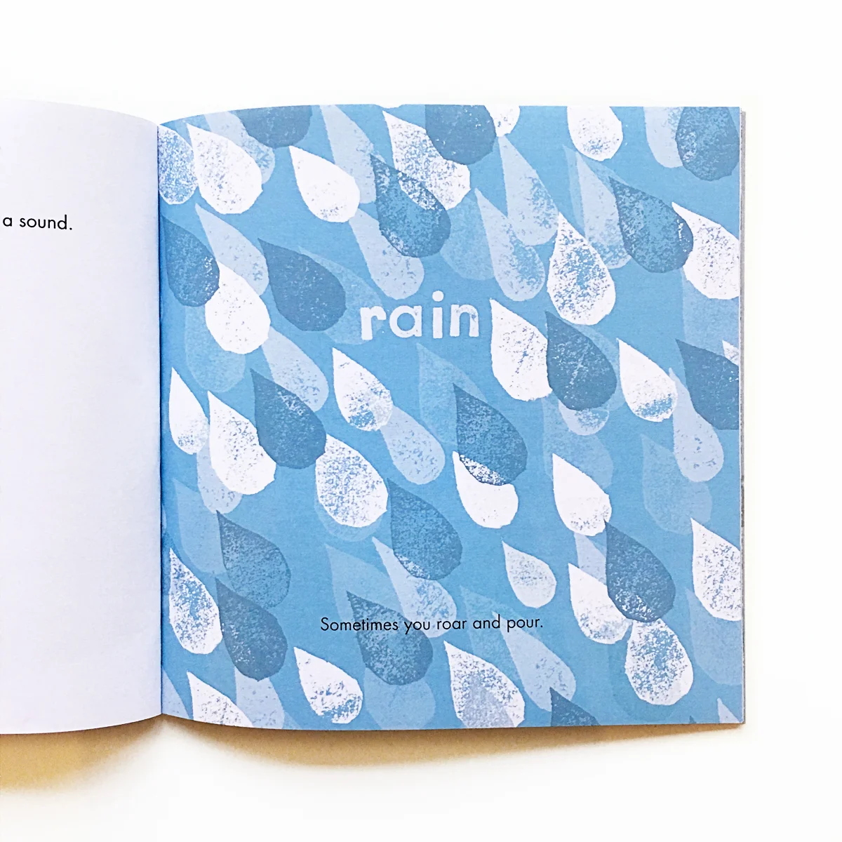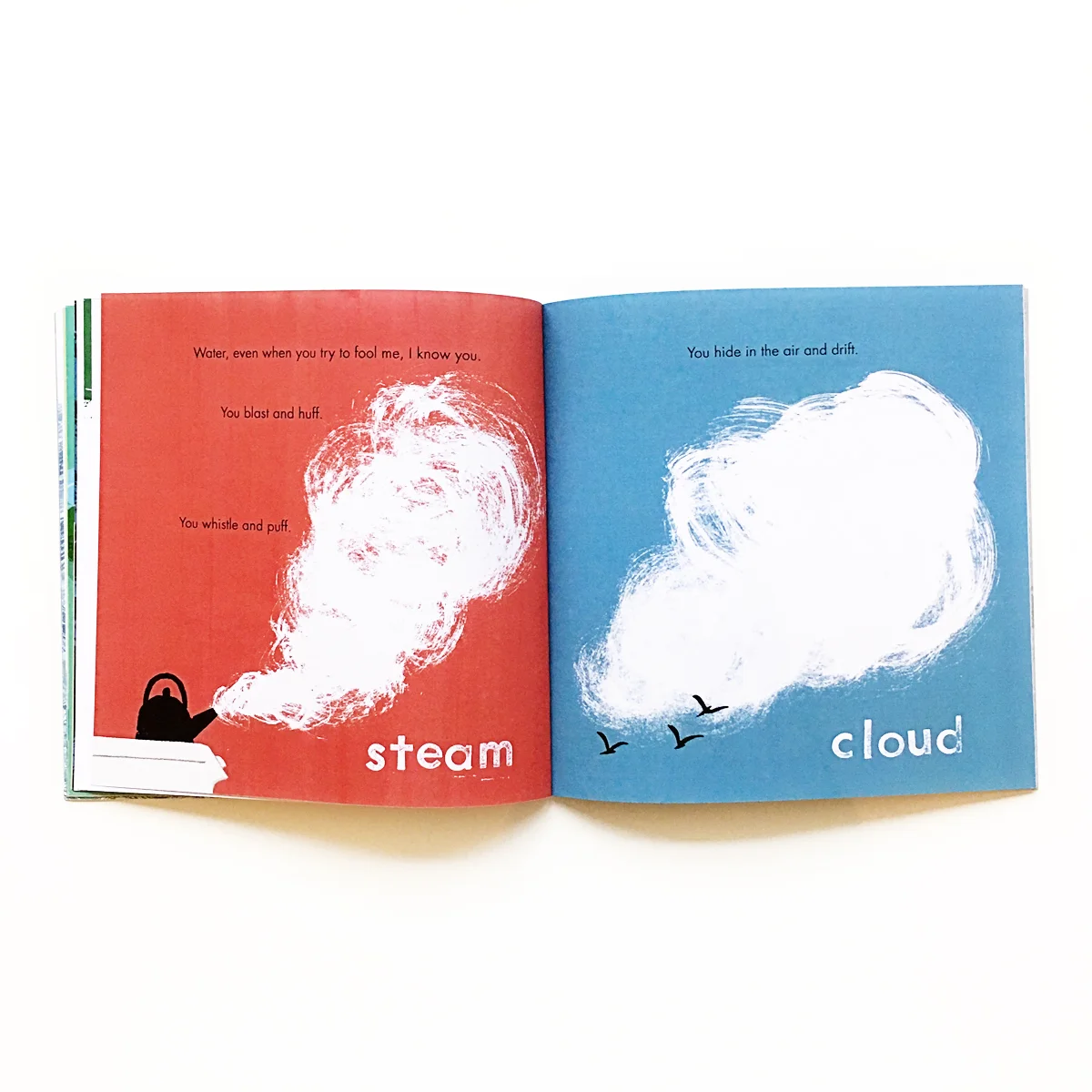 Seemed like a perfect moment to share Hey, Water! since we are nothing if not wet from today’s deluge of rain. As can be surmised from the title, the book is all about water — its forms, facets and nuances — from the tiniest, silent tear to a wide, rushing river. And indeed, water does “roar and pour” (like today’s rainstorm). Antoinette Portis brings a colorless subject to life, making it playful and enjoyable for little ones. As always, she brings magic and wonder to the quotidian, and we love her for it. Author’s notes about water forms and conserving water close this delightful book.